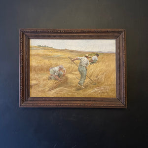 A Ménégaux Original French Oil Painting “Cutting the Hay” Original Oak Frame