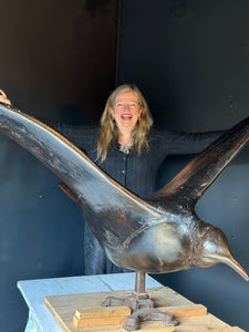 Hand-Carved Chestnut Wooden Albatross/Seagull Bird Sculpture | French Unique Rare