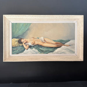 Impressive Reclining Nude French Original Mid Century Oil Painting on Canvas Signed & Framed