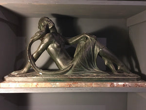 Art Deco French Bronzed Plaster Nude Figurine on Marble Signed “M.SECONdO”