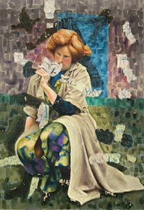 James WOOD (1889-1975) Huge Original Oil/Mixed Media Art Painting “Picking Flowers” 1950’s