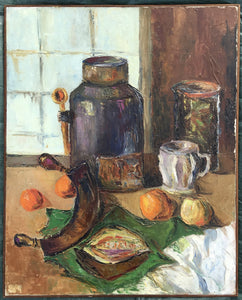 Midcentury French Still Life - Oil Painting on Canvas - Framed