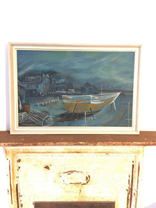 Canadian Midcentury Oil Painting of Boat Harbour Scene Signed