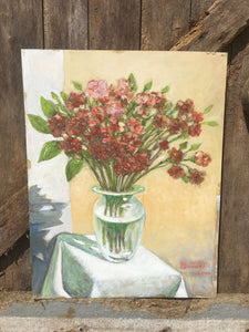 French Original Oil Painting On Board | Flower Vase | Colourful Vintage Picture