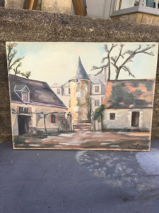 French Original Painting "Chateau" Architectural Oil on Canvas - Signed & Dated